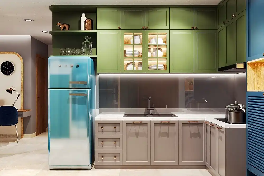 Về màu sắc, phong cách Retro sử dụng chủ yếu là những gam màu pastel như xanh quả bơ, xanh dương nhạt, vàng mù tạt, nâu,… kết hợp cùng màu trắng. Ngoài ra có thể nhấn nhá thêm vài màu sặc sỡ như cam, đỏ và tím hay giữa những màu đối lập, tạo nên sự ngẫu hứng và vẻ rực rỡ cho không gian. Sự kết hợp màu sắc này mang những sắc thái vui tươi nhưng vừa đủ và toát nên một vẻ sành điệu và thời thượng của những thế hệ trước.